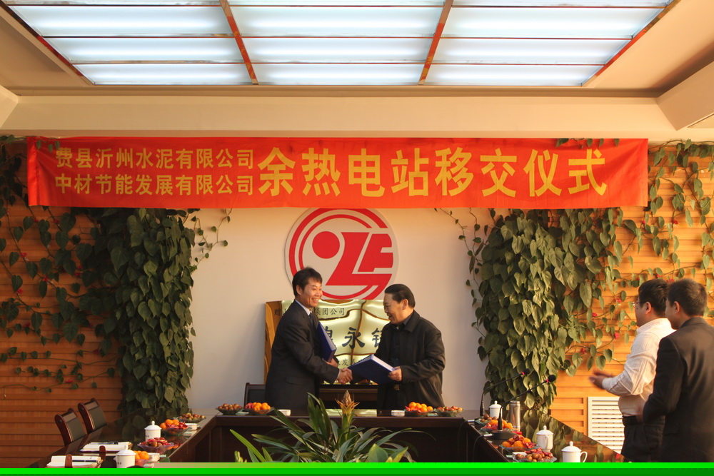 上午9時18分,費縣沂州水泥有限公司5000t/d熟料水泥窯余熱電站移交儀式正式開始。公司總經理何新平、副總經理葛立武、現(xiàn)場經理晏琳灃及沂州集團公司黨委書記張懷連、費縣沂州水泥有限公司總經理主冠強、副總經理徐世杰等共同出席了移交儀式。在移交儀式上何總、葛總與張懷連書記親切交談并共同簽署了余熱電站移交文件。