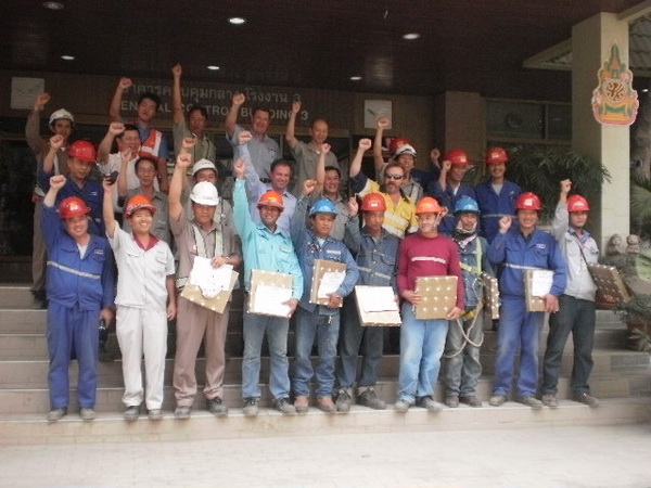 陪同視察的有京都項(xiàng)目經(jīng)理Prapan先生,現(xiàn)場(chǎng)顧問Bill先生,安全顧問Guy先生,安全組長(zhǎng)Sumrit先生,我公司京都項(xiàng)目經(jīng)理部侯躍光先生,現(xiàn)場(chǎng)經(jīng)理江向東先生。