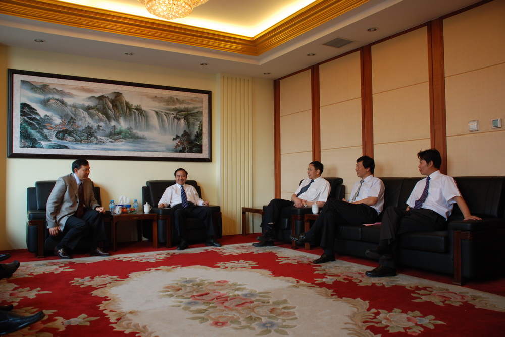 中材集團(tuán)黨委書記于世良在集團(tuán)總部會(huì)見了來訪的寶鋼集團(tuán)副總經(jīng)理兼廣東鋼鐵公司總經(jīng)理、湛江鋼鐵工程指揮部總指揮趙昆一行,雙方進(jìn)行了親切而友好的會(huì)談。