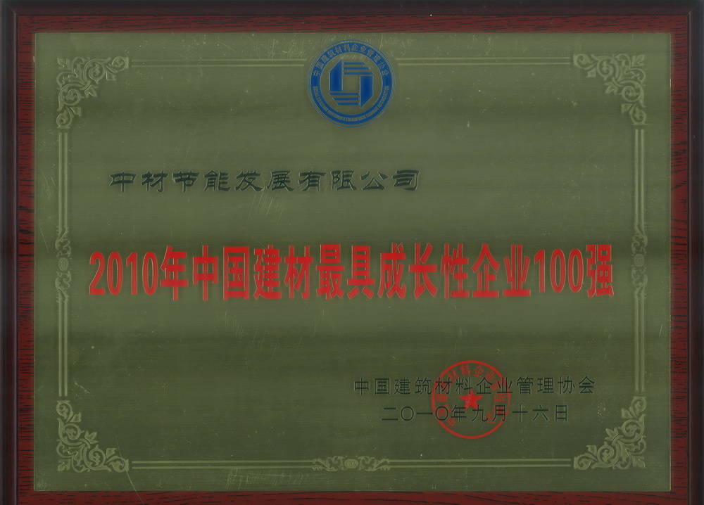 日前,由中國建筑材料企業管理協會發布了2010年度中國建材企業500強和最具成長性企業100強排序名單,中材節能股份有限公司以強勁實力入圍建材500強第213位和最具成長性企業100強第2位。