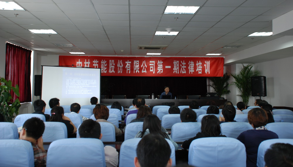 為加強公司管理水平,提高員工風險防范意識,中材節(jié)能于2011年5月13日上午組織了第一期法律培訓。公司特邀常年法律顧問花新樂律師作專題講座,公司高管、中層干部及員工共100余人參加培訓。