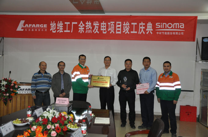 9月20日,中材節(jié)能股份有限公司在總承包的重慶拉法基地維EPC余熱發(fā)電項(xiàng)目竣工典禮上,榮獲拉法基安全管理優(yōu)秀總包商獎(jiǎng)。重慶BU總裁熊光煒、工業(yè)總監(jiān)彭立、安全總監(jiān)陸斌代表拉法基集團(tuán)向中材節(jié)能頒發(fā)了獎(jiǎng)牌、獎(jiǎng)杯和證書。中材節(jié)能總裁胡也明、副總裁魏文華、項(xiàng)目經(jīng)理劉霄、設(shè)計(jì)經(jīng)理曲賀等參加了頒獎(jiǎng)儀式。