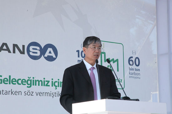 29日在Akcansa水泥公司廠區(qū)內(nèi)舉行了盛大的竣工慶典儀式。中國駐土耳其大使宮小生、中國駐伊斯坦布爾總領(lǐng)事張清洋出席慶典儀式;恰那卡萊代省長Mr.Huseyin Kulozu、集團(tuán)董事長譚仲明、Sabanci集團(tuán)CEO Mr. Zafer Kurtul、海德堡集團(tuán)CEO Mr. Scheifele等出席儀式并發(fā)表致辭。