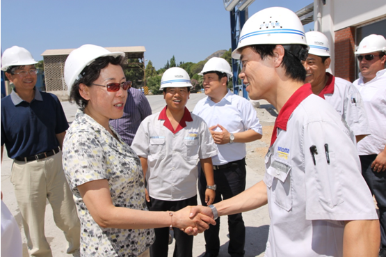 聽取匯報后,黃丹華代表國務院國資委對所有海外工作人員所做出的努力表示感謝,對中材集團的國際化戰略方針及經營策略予以贊同,對項目部的管理水平表示認可。她說,國內外項目存在著很大不同,一定要重視國外項目,關心國外項目的職工,發揮黨員、干部的模范帶頭作用,把項目做好、做實。