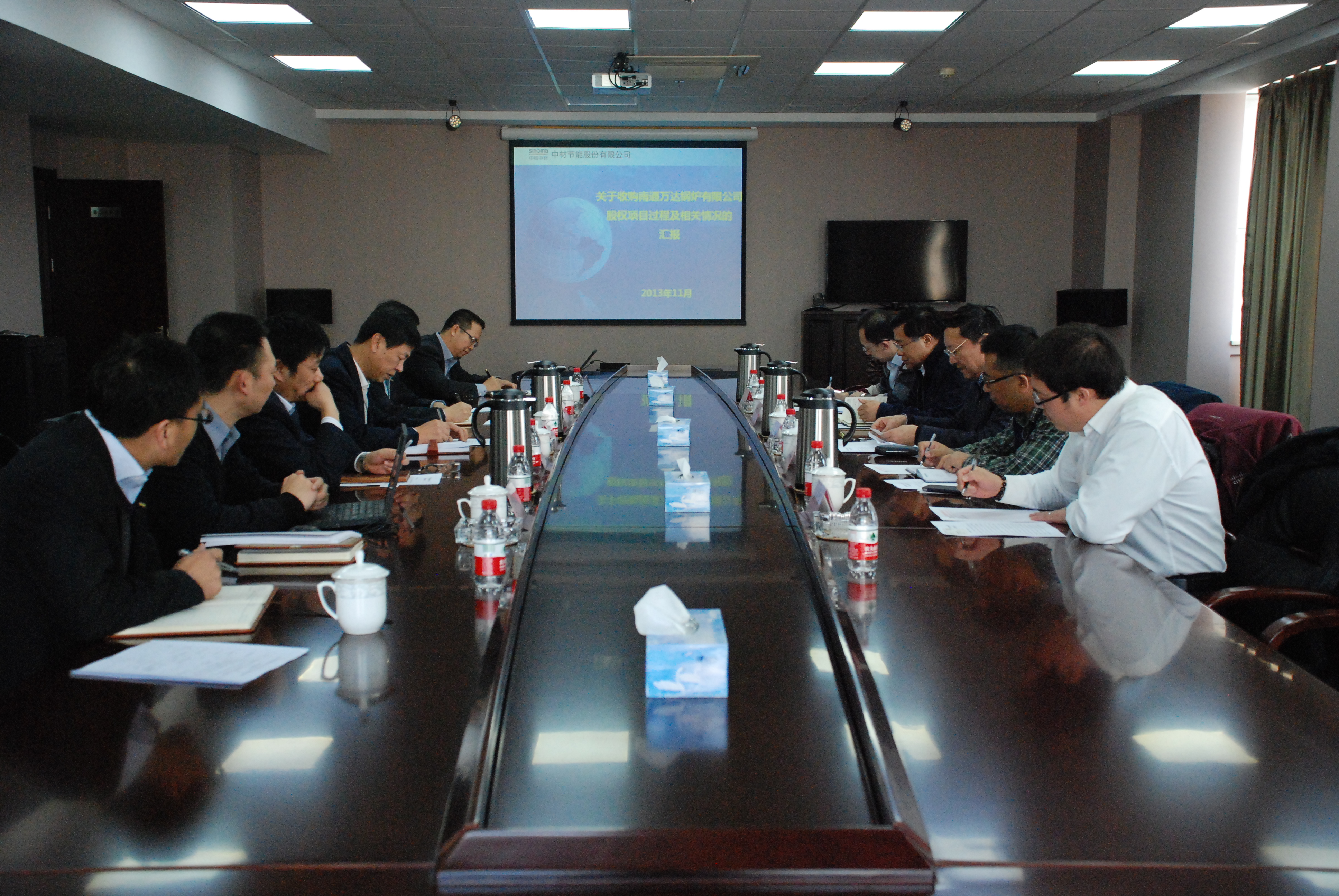 11月15日,國(guó)資委監(jiān)事會(huì)第25辦陳琦良主任一行,在中材股份副總裁余明清、集團(tuán)投發(fā)部彭雪飛經(jīng)理的陪同下,到中材節(jié)能調(diào)研。公司董事長(zhǎng)張奇、總裁胡也明、黨委書記劉習(xí)德、副總裁兼董事會(huì)秘書楊澤學(xué)、證券投資部副部長(zhǎng)黃劍鋒等參加專題匯報(bào)會(huì)。