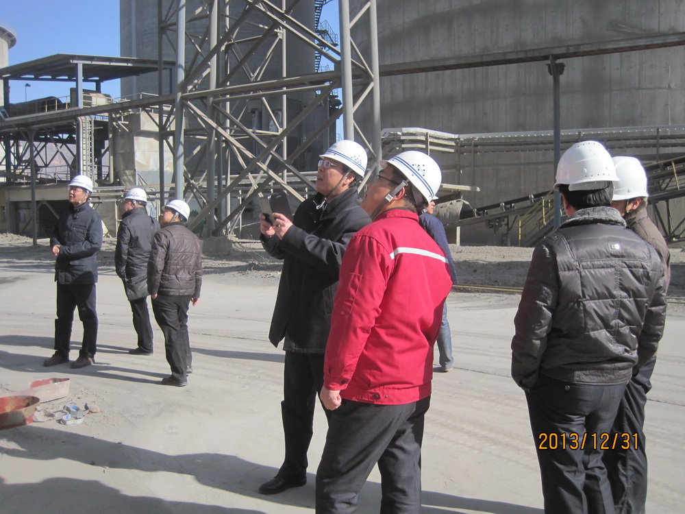 2014年1月1日,總裁胡也明又來到古浪祁連山水泥有限公司余熱發電項目施工現場。此時溫度已到零下16℃,胡也明深入到施工現場,認真查看了鍋爐、汽輪機房內的施工安全、安裝質量等情況。總裁胡也明首先感謝項目部員工和施工人員元旦假日還堅守在項目一線,并祝大家們元旦快樂!他強調指出,項目所在地氣溫較低,一定要做好冬季施工防護措施, 保證工程質量。隨后胡也明與祁連山集團公司高級工程師辛文、古浪祁連山水泥有限公司總經理蔣朝暉、副總經理劉鋒、項目總監等進行了座談。水泥公司總經理蔣朝暉代表業主對胡也明在元旦假日冒著嚴寒到項目上檢查指導工作表示感謝。