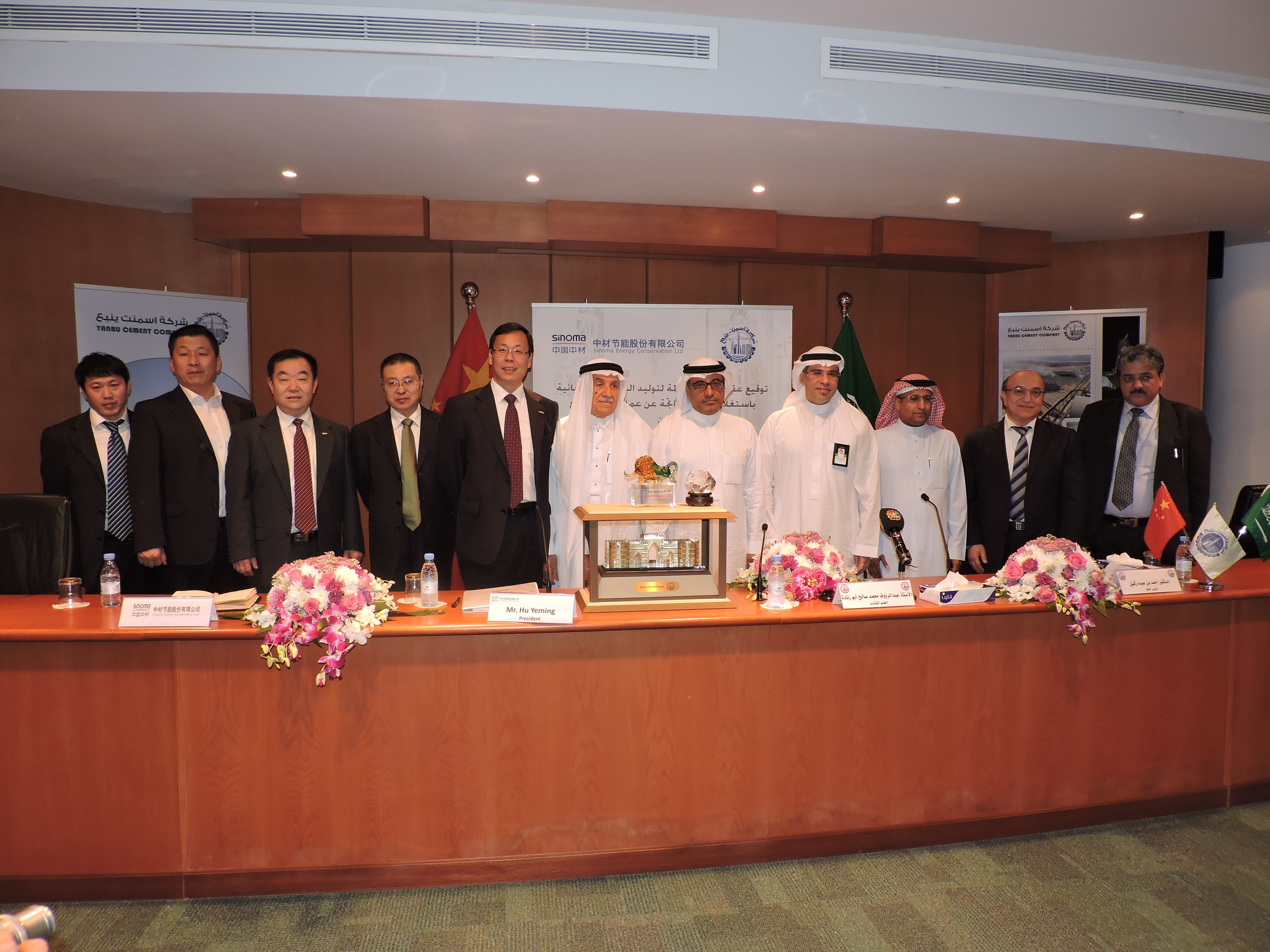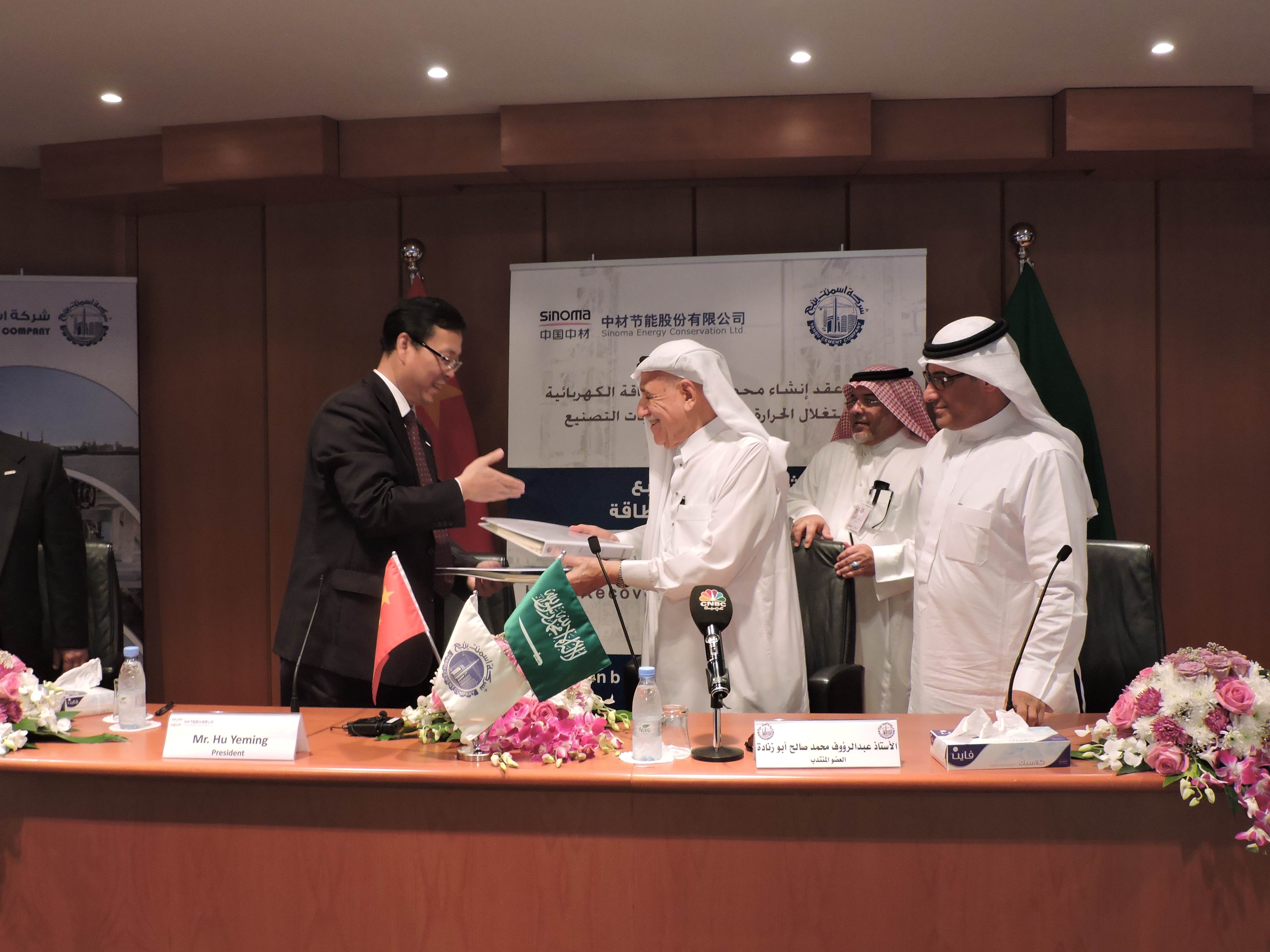 2015年3月4日,中材節能總裁胡也明先生、YCC水泥集團公司董事Mr. A.RAOUF ABUZINADAH分別代表雙方最終在合同書上簽字,這標志著全球最大的水泥窯余熱發電項目正式生效。這是中材節能于2014年12月獲得該項目中標通知,經過近一段時間卓有成效磋商談判后獲得的結果,這也是中材節能繼沙特NCC水泥公司余熱發電項目成功投入運行之后,在沙特市場上獲得的另一里程碑式的重要訂單。