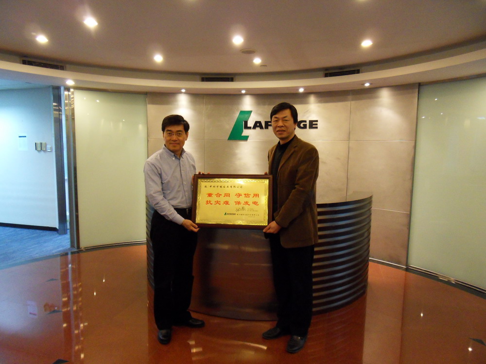 拉法基亞洲DEC總裁Pierre先生、四川區工業總監李正洙先生,中材節能董事長張奇先生,主管投資副總經理劉春燕女士,主管工程副總經理魏文華先生參加了頒獎儀式。