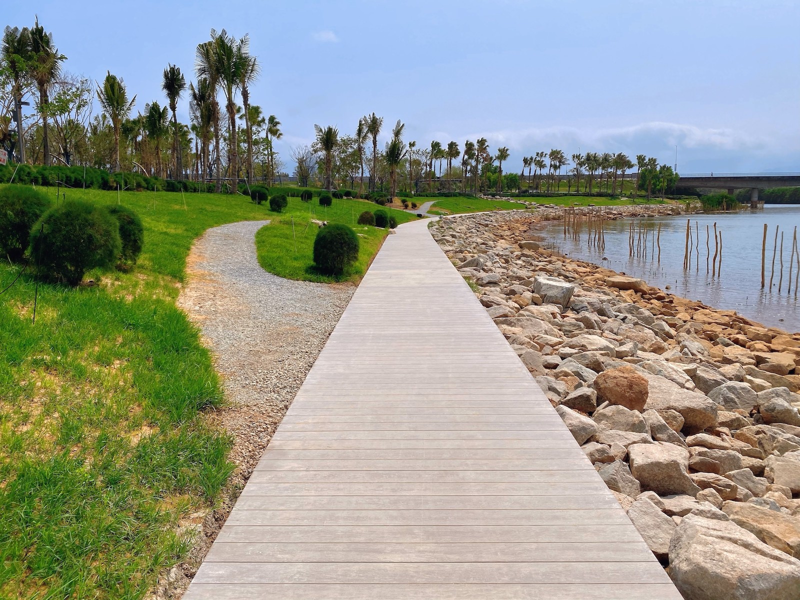 The Sanya Haitang River Comprehensive Treatment Project Start-up Area Project is an important milestone in Sanya's green development strategy. Among them, the sample project of the trestle along the river is built by Sinoma Energy Conservation (Wuhan) Co. (hereinafter referred to as "Energy Saving Wuhan"). Energy Saving Wuhan practices the corporate mission of "materials create a better world", actively responds to and promotes the ecological management of the whole area of the river, and chooses the self-developed and self-researched and self-produced Sinoma Hankun? palisade boards, so as to integrate the green space along the river, enhance the vitality of natural ecology with the green environmental protection products, harmonize the landscape and the environment, and contribute to the health and sustainable development of the city. We will contribute to the health and sustainable development of the city. Sinoma Hankun? pallet board is a new type of green board with natural cedar texture on the surface, integrating green environmental protection, Class A fire prevention, moisture and moth proofing, convenient installation and other excellent properties; as the best alternative to wood materials and wood-plastic products, it has better weather resistance and economy, and has been used as the best alternative to wood and plastic products. As the best alternative to wood and wood-plastic products, it has better weather resistance and economy, and has been widely used in landscape projects.